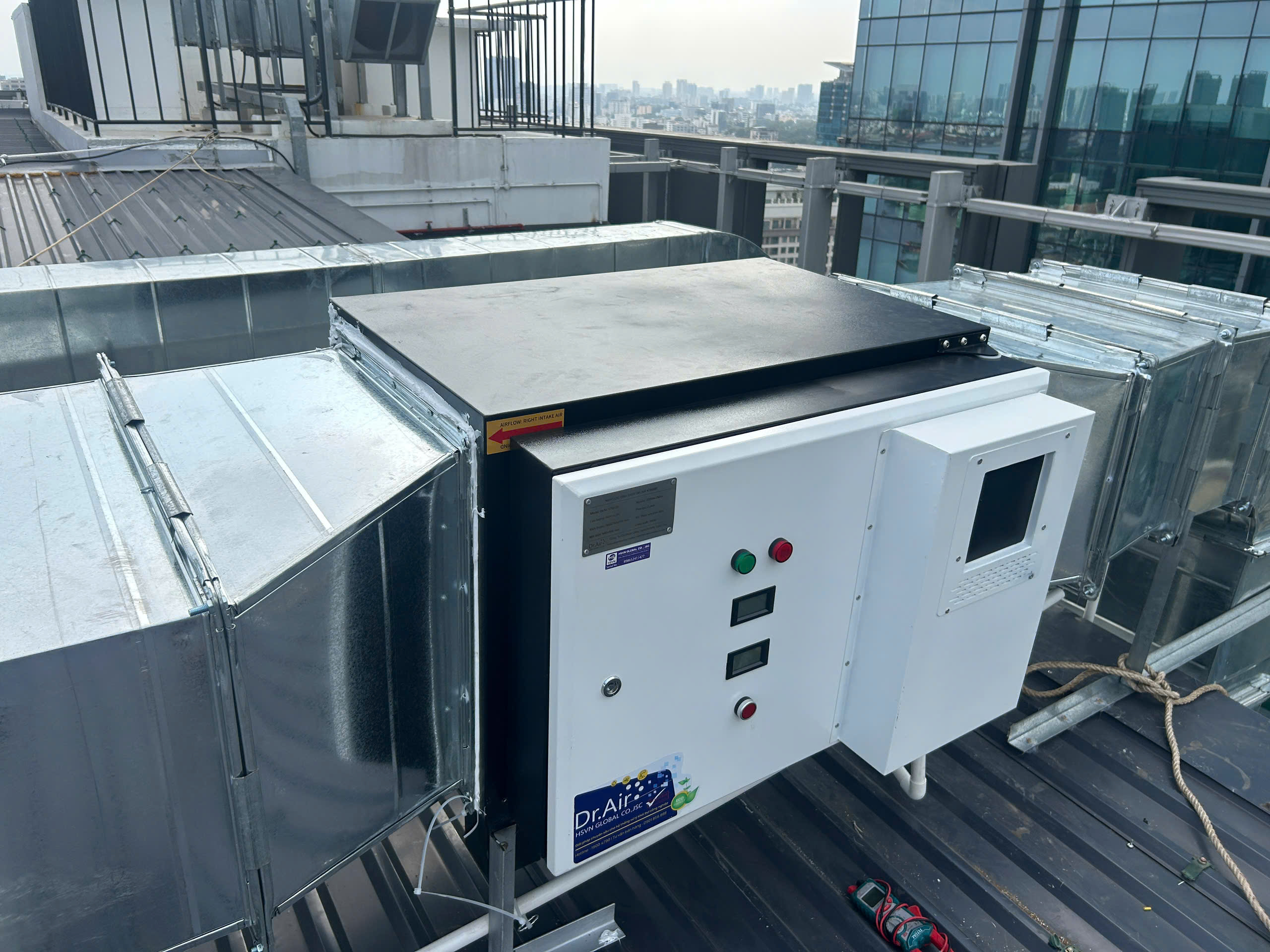 Nhà hàng rooftop tại vị trí tầng cao trung tâm thành phố mang đến không gian sang trọng, thoáng đãng, nhưng đồng thời cũng đặt ra bài toán lớn về xử lý khói bếp: